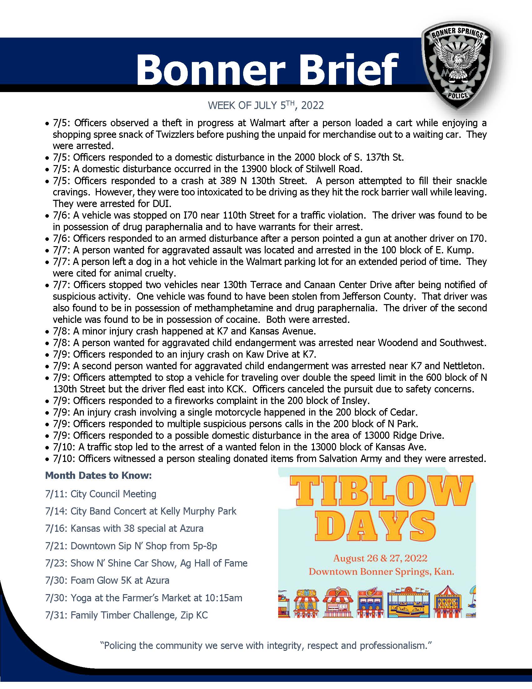 Web Tiblow Days Festival - Bonner Springs KS - AARP Schedule. Web Tiblow Days August 2023 dates not updated Downtown Bonner Springs KS 66012 Status. Public Dedication Ceremony at Cedar Street between E.